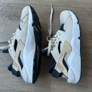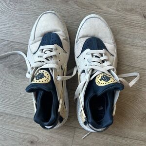 Selling on GOAT for $2,000+. These are in very used condition with cleanable signs of wear. Says size 8.5 but fits like a women’s 7/7.5. Tan/Navy colorway.