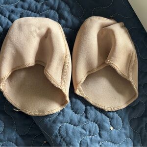Used 2 pairs of Elegant pink pointe shoes: 1st are by Gaynor Minden. Size 9 1/2. 2nd: Ariel brand size 9, haven’t used in many years, only used for one season of ballet. Scuffs and one pen marking shown in photos. Selling both together.