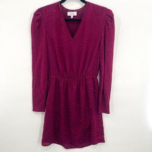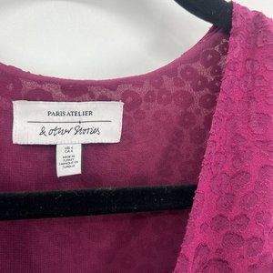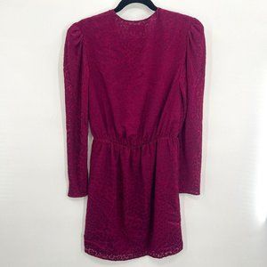 And Other Stories Gathered Waist Leopard Jacquard Mini Dress Vneck Burgundy US 4