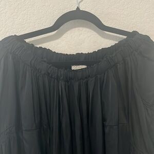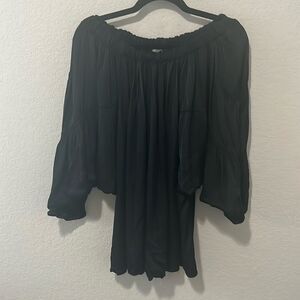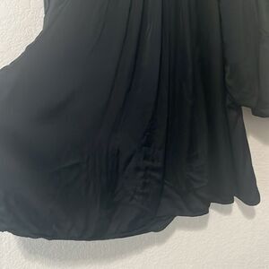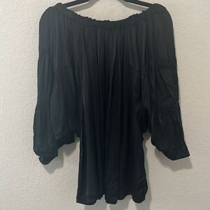 SOFIA Italian Womens Top Black Satin Off-Shoulder Batwing Sleeves, Size M/L