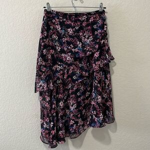 MISA Los Angeles Carmen Floral Navy Pink Ruffle Skirt, Size XS