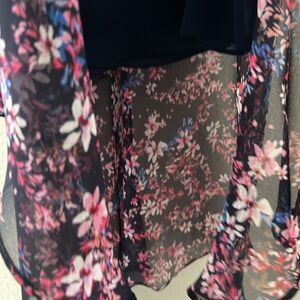 - Navy blue with pink and blue floral print. Beautiful Ruffle tiered cut