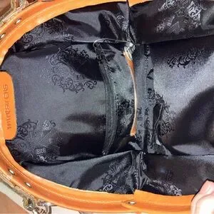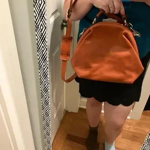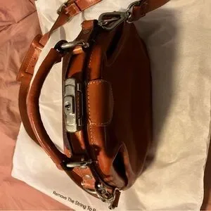 This beautiful and rare Mutsaers brand bag is in the style the Galore. This Dutch brand is so cool; the bag is in excellent condition and even comes with a little key to lock the top. Has a long shoulder strap and hand strap.