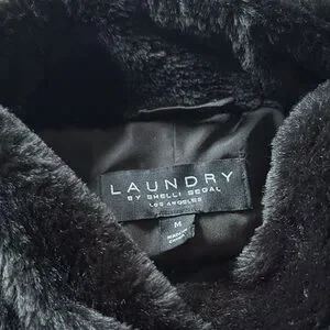 Elegant Black Faux Fur Cropped Jacket, Laundry by Shelli Segal, M
