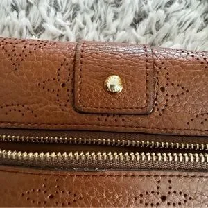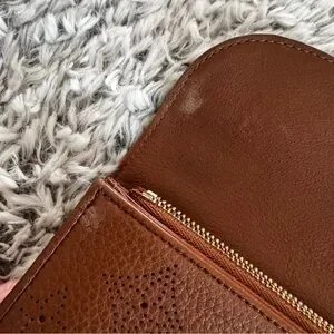 The gorgeous Louis Vuitton Cognac Mahina Amelia Wallet was named after Amelia Earhart, the American Aviation Pioneer. It features eighteen card slots, a zipped change compartment and plenty of room for your bills. This delightful piece will always be a timeless classic and the only wallet you will ever need. Retail price is $1030.
