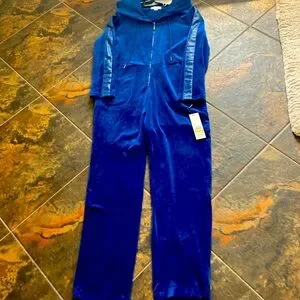 NWT Luxurious blue velour jumpsuit with a hood. Perfect for a cozy and stylish look.
