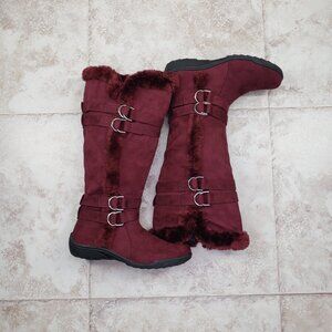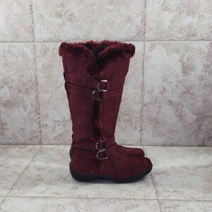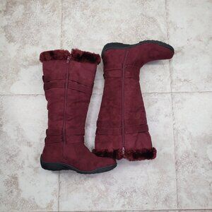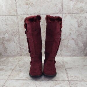 Buckled Faux Fur Hot Tomato Pavati Suede Zippered Full Calf Knee Boots Size 6 M