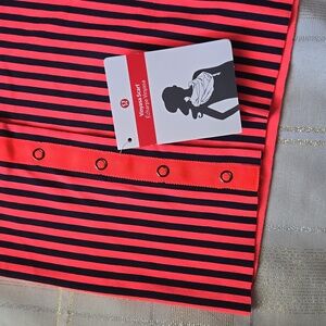 NWT, Lululemon Coral & Navy Blue Vinyasa Scarf w/ snap button closure. The Vinyasa Scarf can transform into an infinity or loose scarf or wrap. Measurements are shown in photos.