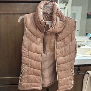 Calvin Klein Women Puff Vest in Light Rose Pink Small Gold Zip
