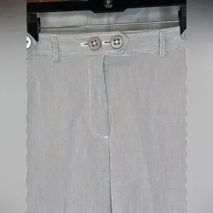 These light beige Bermuda shorts feature a tailored design with a flat front and a subtle textured fabric, offering a refined yet casual look. The knee-length style makes them perfect for smart-casual summer occasions, providing versatility for pairing with various tops. They are approximately 22” long and the waist measures at approximately 16” hip to hip. They are 96% cotton and 4% spandex.