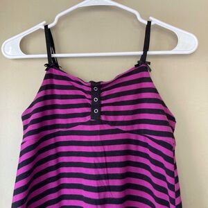 Vintage Y2K Betsey Johnson Hot Pink/Black Striped Mini Lingerie Dress S
