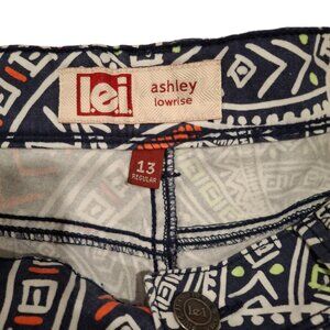 L.E.I Shorts Jr. Women's Ashley Coll. Graphic Cutoffs Blue Orange White Grn. 13
