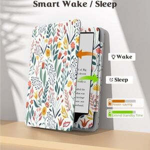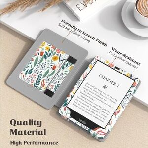 MoKo Case Fits All-New 6" Kindle (11th Generation, 2024/2022 Release)/ Kindle (10th Gen,2019)/Kindle (8th Gen, 2016), Ultra Lightweight PU Shell Cover with Auto Wake/Sleep for Kindle 2024, Flowers