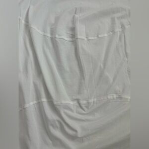 Lululemon women’s back in action t shirt in white. Gummy logo on top rear. Unique stitching on back.