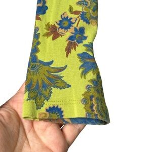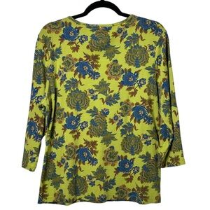 First Issue Size XL Chartreuse Bohemian Print Top Sequin Trim 3/4 Sleeve Y2K