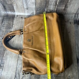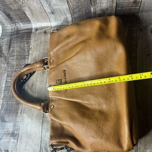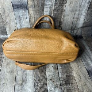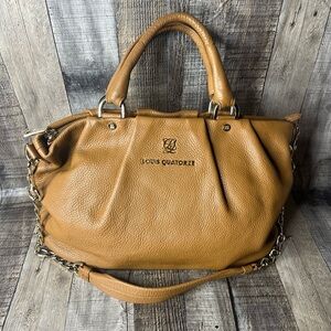 Louis Quatorze Women’s Brown Leather Satchel Shoulder Bag Crossbody Handbag. This sophisticated bag features a rich brown leather exterior with versatile carrying options. Like new, with a minor makeup mark on one interior pocket, as shown in the pictures. A timeless and elegant accessory for any wardrobe!