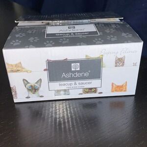 Cat lovers👆Ashdene Peeping Felines cup & saucer. Brand new in a box. Fine Bone China.