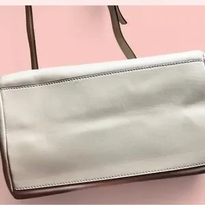 Off-White Structured Leather Satchel with Silver Accents
