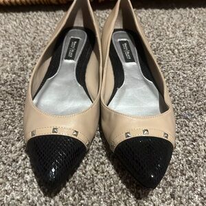 Step out in style with these elegant flats from White House Black Market. Featuring a chic beige and black design, these shoes are perfect for any occasion. The sleek look and comfortable fit make them a must-have addition to your wardrobe.