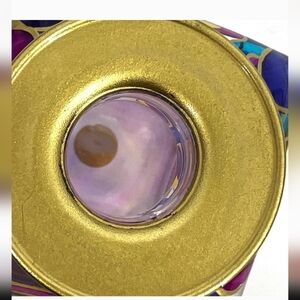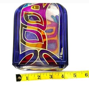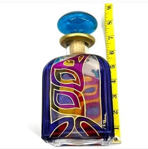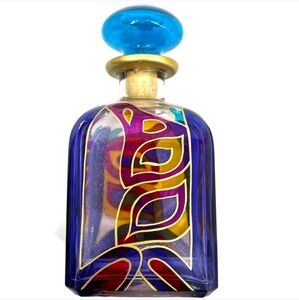 Add a splash of color to your home with this vibrant glass decanter perfect for port, cognac, whiskey. Featuring a stunning combination of blue, purple, and gold hues, this piece is perfect for art lovers.