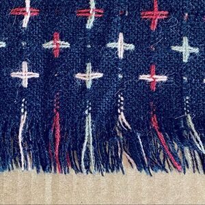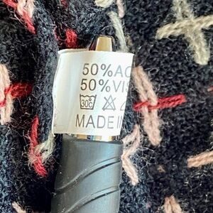 Red and white cross pattern on black in a soft viscose acrylic blend.