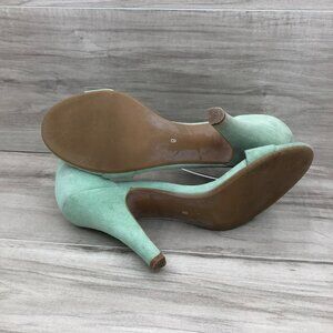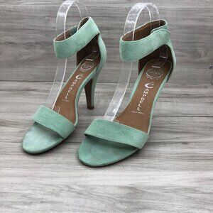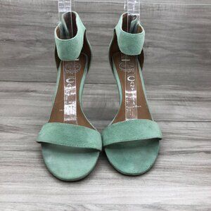 Jeffrey Campbell Mint Green Suede Hook and Loop Ankle Strap Heeled Sandals Women's Size 9