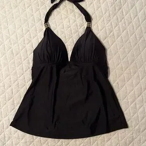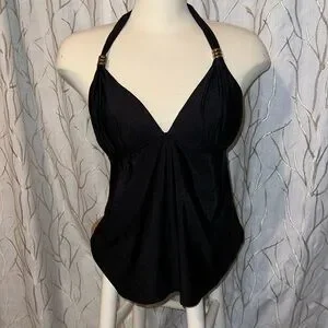 Swim top. Black. Ties around neck with gold accents. Built in bra pads. Size Medium.