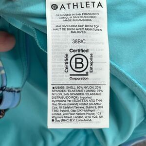 Athleta Bikini Top Womens Size 38B/C Blue Floral Maldives Bra Cup Adjustable UPF 50+