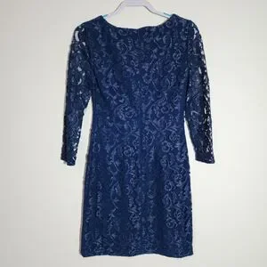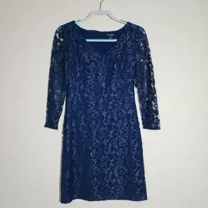 Lauren Ralph Lauren Womens Lace Sheath Dress Size 4 Blue V-Neck Holiday Party