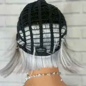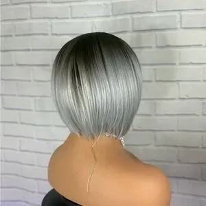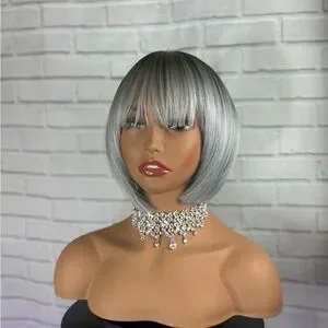 Ombré silver bob wig with bangs premium quality synthetic hair