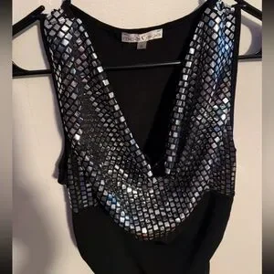 Moa Moa black and silver sleeveless disco blouse size XL preowned