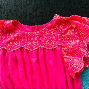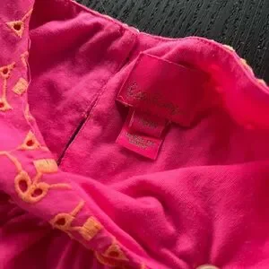 Step into elegance with this vibrant pink babydoll dress by Lilly Pulitzer, featuring charming ruffled smocked details and flutter cap sleeves. The crew neck design adds a touch of sophistication, making it perfect for a wedding guest or cocktail occasion. Its lightweight fabric ensures comfort and style for a memorable night out.