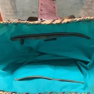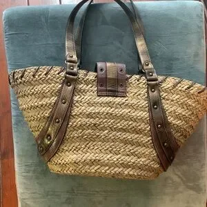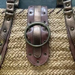 Stylish woven tote by Nine West. Features tan and brown design. Perfect for casual outings.