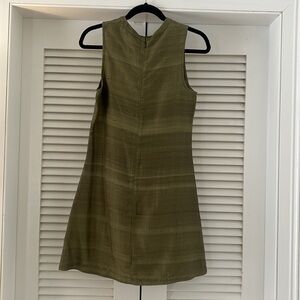 Made of 100% dupioni silk (unlined), this dress features a slight a-line cut, hits mid-thigh & has a zipper closure in the back.