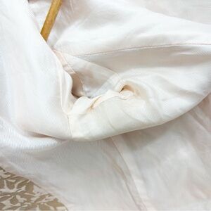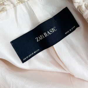 Zara Basic Metallic Rose Jacquard Blazer Jacket. Long sleeves. Notch lapel collar. Single front button closure. Front flap pockets. Sleeves have buttons detail at wrist. Soft shoulder pads. Fully line in pale pink. Textured, jacquard fabric.