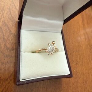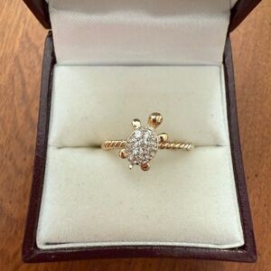 Good vintage condition! Super cute Vintage Turtle with Rhinestones Gold Tone Ring.