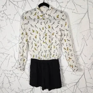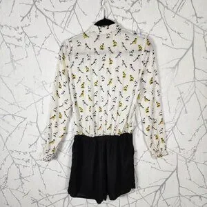 Camaieu Cats Print Button Up Romper