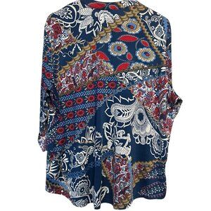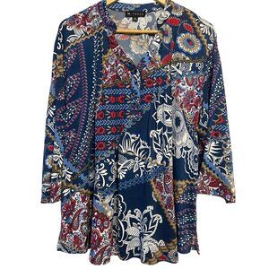 N Touch Women’s 1X Multicolor Floral Boho Tunic Top Button Details Blue Red