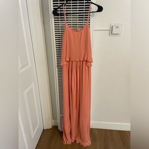 Lovers + Friends Long Orange Pleated California Girl Dress in Coral