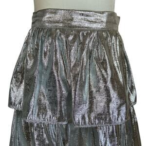 Silver metallic tiered ruffle maxi skirt. Fully lined with satin. Zips up the back. Gorgeous in person! Elevate your look for a special occasion!