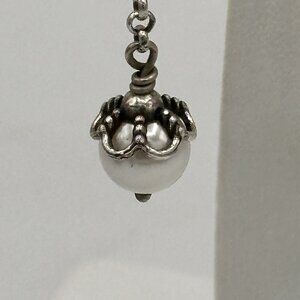 Brighton earrings, silver-plated jewelry, pearl drop earrings, vintage-style earrings, rhinestone dangle earrings, Brighton jewelry, elegant fashion jewelry.