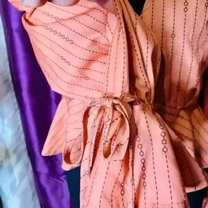 Shein Tie Front Ruffle Hem Striped Top Size Medium