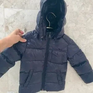 MONCLER {3} Coat Navy Blue Girls' Puffer Zip-Up Detachable Hood
