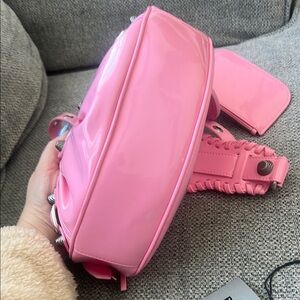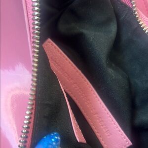 This vibrant shoulder bag features a bold bubblegum pink color and a unique crescent shape. Adorned with silver-toned studs, it offers an edgy, punk-inspired look. The detachable strap allows for versatile carrying options. It’s great over the shoulder or even cross body. Super fun and cute and light dust interiorly. Pristine condition. Some marks where the hardware is buckled which is typical and tried to show in photos. I used it in New York for a trip, it’s been to Broadway and Central Park! 😆 has dust bag, and will look for box- I think I have that too. Low ball offers won’t be answered. Price is firm.