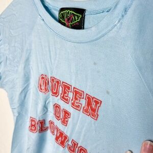 Y2K OMIGHTY Offensive Babydoll Tee Shirt Queen of BJ