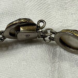 Probably made in Italy. The necklace is 17” long, end to end. Bracelet is 7” long, end to end.