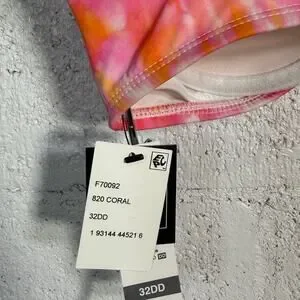 SUNDAZED Harper Tie-Dyed Bikini Top & Strappy Bottoms, CORAL 32DD/S