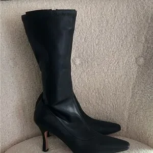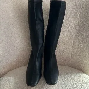 NA-KD vegan leather heeled boots. Never worn. Comes with box.