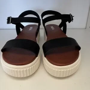 Mia platform women’s sandals, black leather strap, size 9US