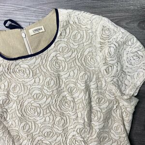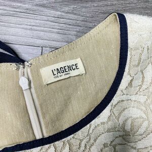 L'AGENCE | sz 8 Women's Beige Floral Black Piping Rose Lace Cap Sleeve Dress